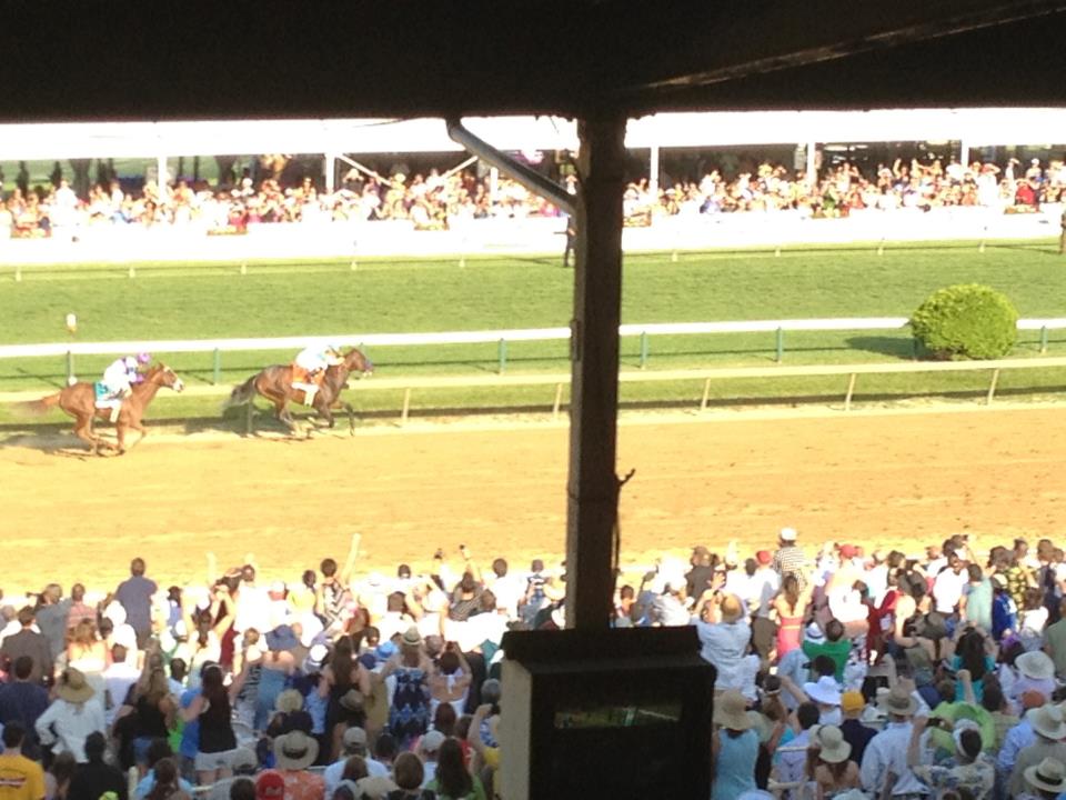 As they closed in on the finish line we were all on our feet, jumping up and down and screaming. So much so, that we had no idea who had actually one! I yelled at Sutton, "who won?!" and she yelled back (while jumping up and down, "I have no idea!" After watching the replay, we could see that I'll Have Another edged out Bodemeister just as he had done at the Kentucky Derby by a nose.